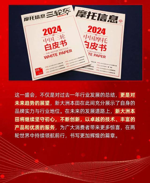 中國摩托車白皮書:新大洲本田斬獲四項(xiàng)獎項(xiàng),在摩托界持續(xù)領(lǐng)航前行!