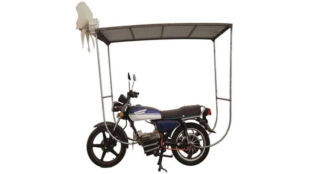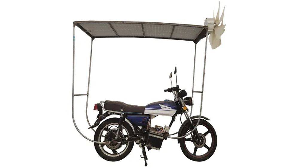 從外觀看,這輛車看起來像是 本田CG125 被改造出來一頂太陽能小屋和一根風(fēng)力發(fā)電機(jī),硬是把「風(fēng)火輪」重新定義。 據(jù)官方資料,這臺車搭載250W的太陽能板、72V/10A的風(fēng)能控制器,能將自然能源儲存到72V 30Ah的鋰鐵電池中,還附帶LCD屏幕跟三段變速,看起來真有那么一回事。