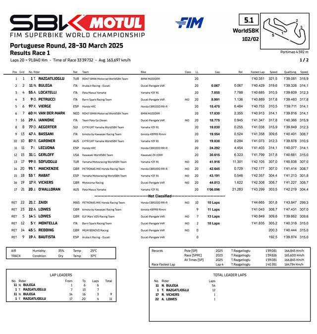 FIM WorldSBK 超級(jí)跑車(chē)世界錦標(biāo)賽(FIM Superbike World Championship)2025 賽季第二站的比賽,上周(三月 28 - 30 日)在葡萄牙阿爾加維(Algarve,也稱(chēng)之為 Portimao 波蒂芒)賽車(chē)場(chǎng)舉行。
