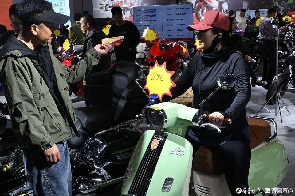 4月11日,2025齊魯春季車展暨第51屆齊魯汽車展覽交易會(huì)在山東國(guó)際會(huì)展中心迎來(lái)購(gòu)車人潮。在單獨(dú)開辟的一片摩托產(chǎn)展區(qū),許多女士消費(fèi)者結(jié)伴試乘,或許能讓摩托車騎行隊(duì)伍變得多姿多彩。