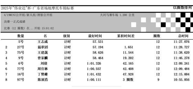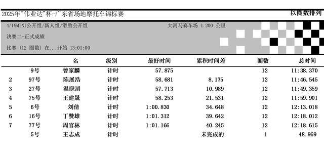 下面的圖片,2025 偉業(yè)達(dá)杯 廣東省場(chǎng)地摩托車錦標(biāo)賽 恩平站、各競(jìng)賽組別成績: