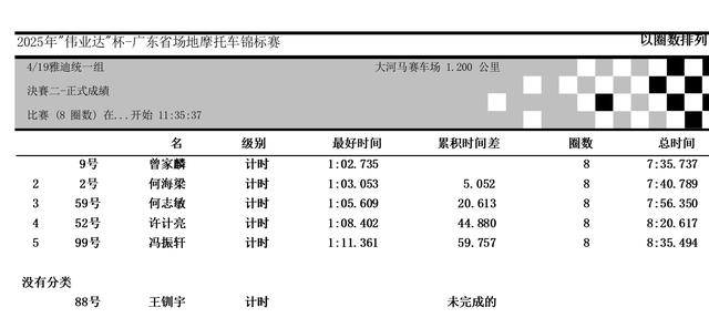 2025 偉業(yè)達(dá) GP 揭幕戰(zhàn)、廣東省場(chǎng)地摩托車錦標(biāo)賽 恩平站:成績
