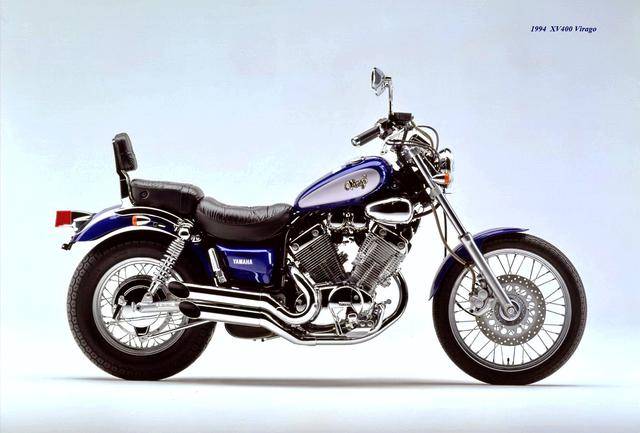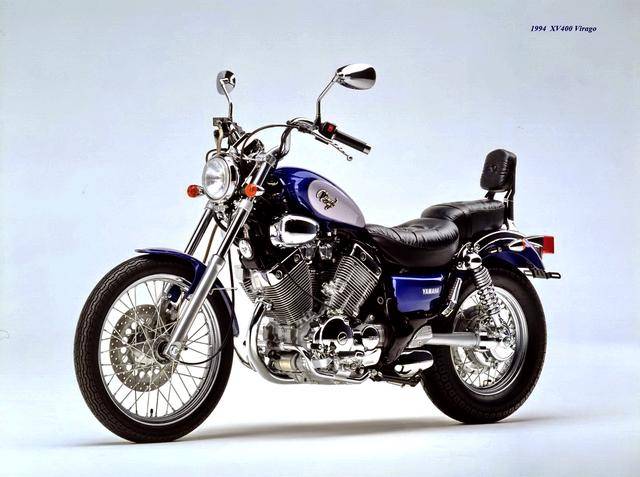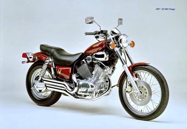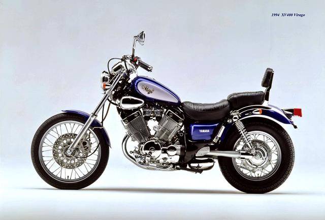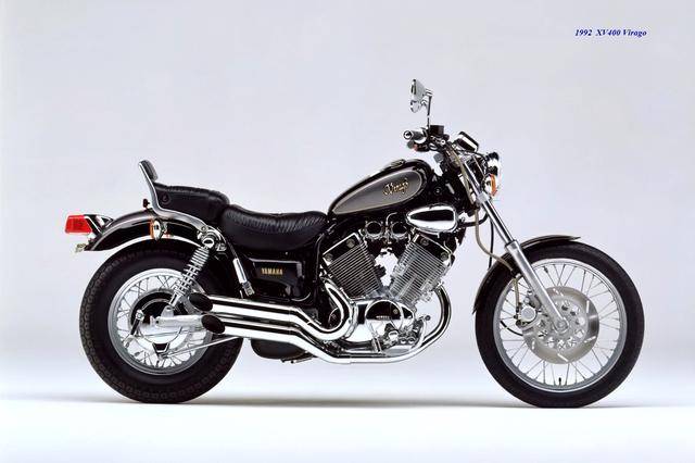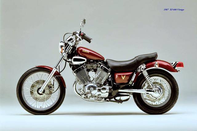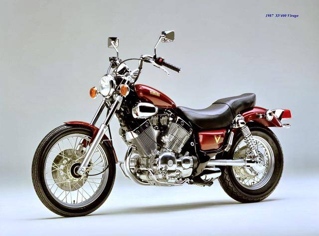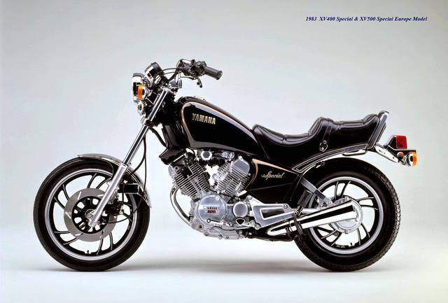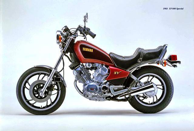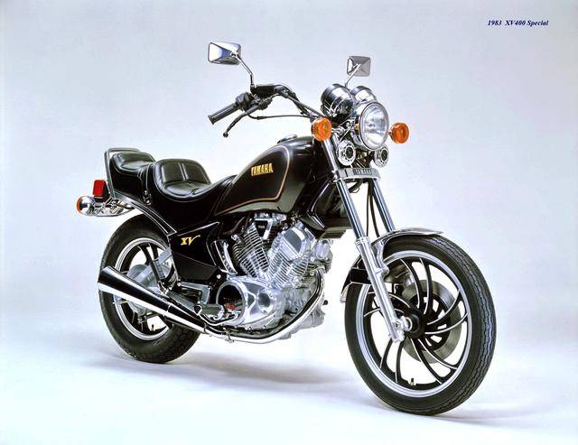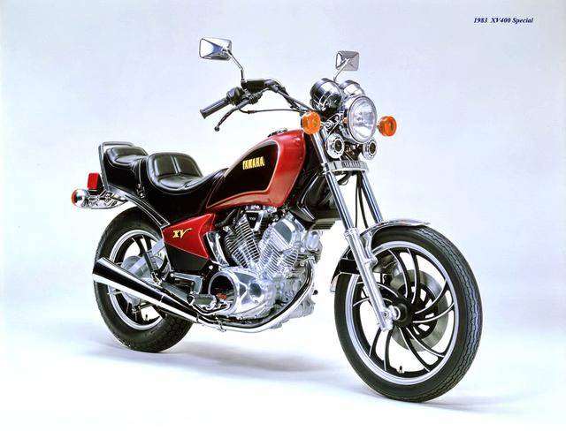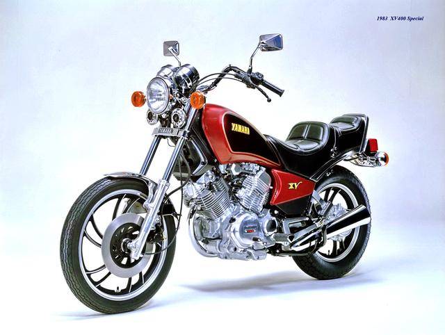 基于 1982 XV500,Yamaha 在 1983 年三月、正式推出了第一款 XV400,車型為 XV400 Special(工廠編號 26M)。該車搭載一副風冷四沖程 V 型 70 度兩氣缸、SOHC 每氣缸兩氣閥的發(fā)動機,缸徑、行程為 68 mm x 55 mm(此前的 XV500 為 73 mm x 59 mm),排氣量 399 cc(XV500 為 494 cc),采用兩具口徑為 34 mm 的下吸式 Mikuni 化油器,配備了能夠提高低、中轉速域扭矩輸出、同時可將油耗降低大約 10% 的 YICS(Yamaha Induction Control System,Yamaha 電磁感應控制系統(tǒng))系統(tǒng),五檔的變速齒輪箱,最大馬力輸出 40 匹(XV500 為 44 匹)。