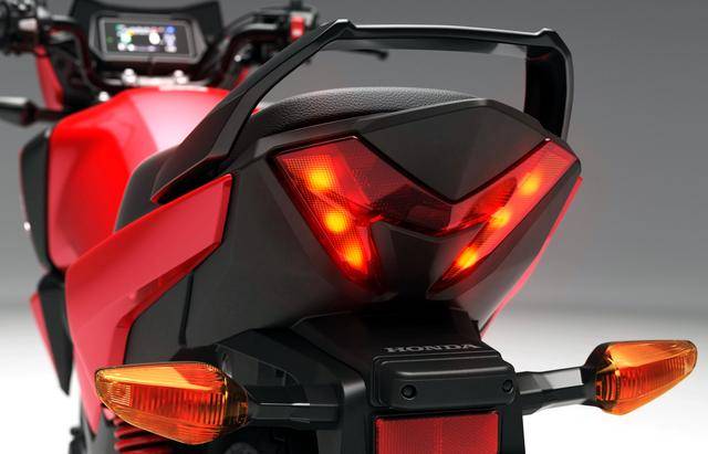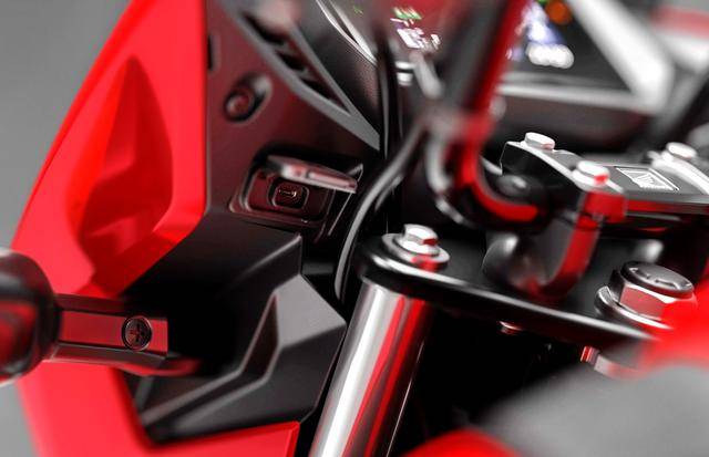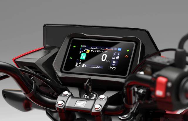 5、換裝了全新的 4.2 英寸 TFT 全彩色數(shù)字式儀表板(上一版本車型采用 LCD 儀表板),除了常規(guī)的速度、轉(zhuǎn)速顯示功能之外,還包括檔位指示器、油量計(jì)和時(shí)鐘。儀表板集成了藍(lán)牙,可以透過 Honda 的 RoadSync 智能手機(jī)程序與車輛進(jìn)行連接,此功能可讓儀表板直接變成了導(dǎo)航屏幕,以及騎士撥打電話或聽音樂的選項(xiàng)(通過帶藍(lán)牙功能的頭盔耳機(jī))。此外,為了便于給智能手機(jī)充電,車頭整流罩的后方帶有 USB-C 插口;