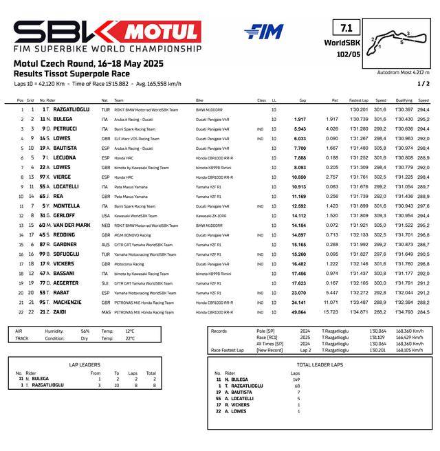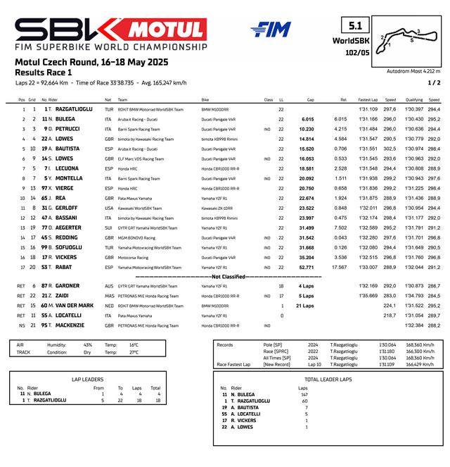 FIM WorldSBK 超級(jí)跑車世界錦標(biāo)賽(FIM Superbike World Championship)2025 賽季第五站的比賽,五月 16 - 18 日、在捷克的莫斯特賽車場(chǎng)(Autodrom Most)舉行。