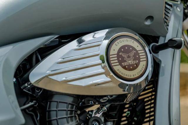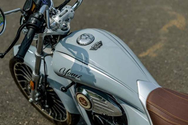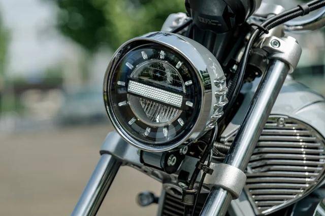 YOMI的外觀堪稱跨騎界的“顯眼包”,其設計跳脫傳統(tǒng)巡航車的框架,將美式Chopper的高把、低座、長軸距元素與東方審美巧妙結合。車身線條流暢優(yōu)雅,水滴形油箱采用鋼琴烤漆工藝,搭配鍍鉻豎琴格柵裝飾罩,復古中透露出精致感。前大燈的號角造型與LED光源設計,既呼應經典又兼顧實用性,夜間辨識度極高。尾部的“海洋之心”心形尾燈更是點睛之筆,賦予整車浪漫氣息。