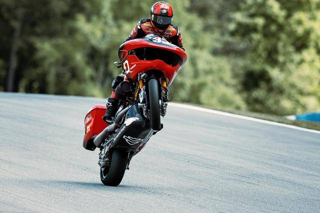 2、全部車手將采用相同規(guī)格的 Bagger 賽車。賽車由哈雷工廠賽車公司設(shè)計(jì)、專門為比賽而打造,車輛的峰值馬力輸出將超過 200 匹,最大扭矩245 N.m,重量約為 280 公斤,最大極速超過 300 km/h;