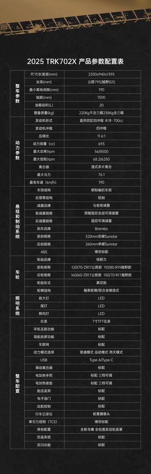 日前,貝納利正式發(fā)布了2025款TRK702,包括公路版和越野版。改款升級后的TRK702憑借其硬核配置和極具競爭力的價(jià)格,迅速在車迷中引起了廣泛關(guān)注。