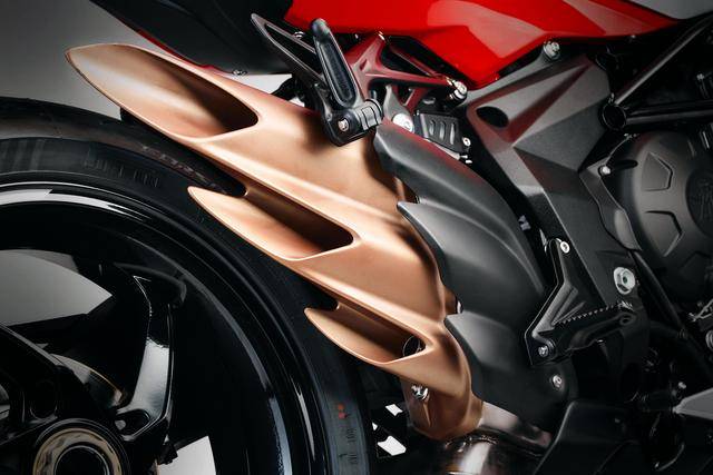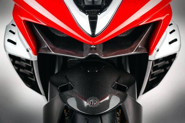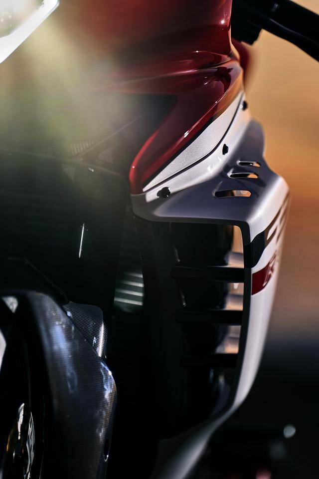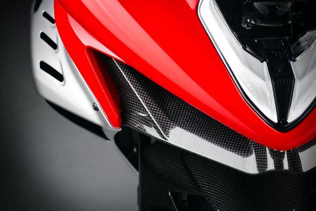 1、采用了 MV 奧古斯塔標(biāo)志性的 Argento Ago 銀色和 Rosso Ago 紅色所組成的車身圖案/貼花;