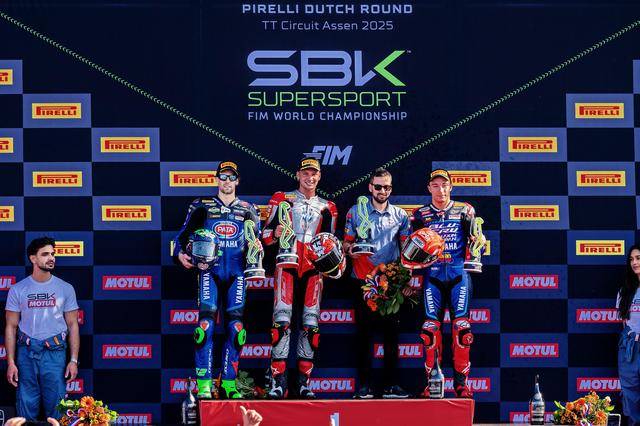 下面的圖片,2025 FIM WorldSBK 超級跑車世界錦標(biāo)賽荷蘭站,奪得了 WorldSSP 級別第一節(jié)比賽冠軍的本施耐德(資料圖片)。而隨后的第二節(jié)比賽,他也獲得了季軍。
