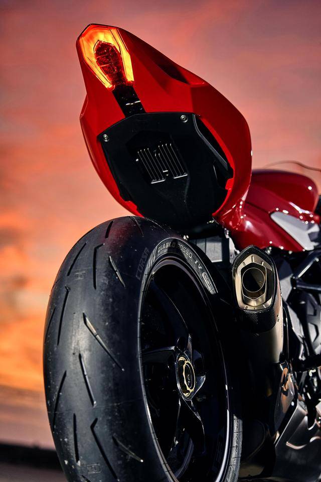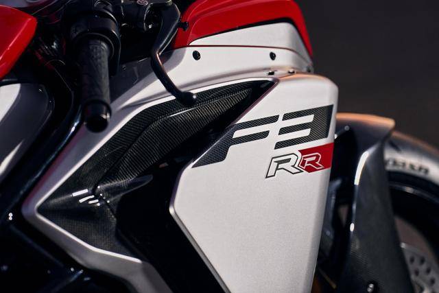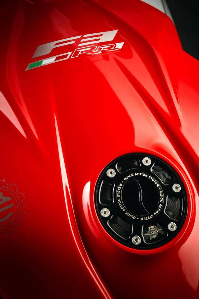 作為 MV 奧古斯塔當(dāng)前在售車型里面、僅剩的現(xiàn)代風(fēng)格跑車,F(xiàn)3 RR Ottantesimo 八十周年版是 F3車系的第五個車型(另外四個分別是 F3 R、F3 RR、F3 RC 和 F3 Competizione 競技版),基于 F3 RR 修改而成,搭載一副水冷四沖程直列三氣缸、DOHC每氣缸四氣閥的發(fā)動機(jī),缸徑、行程為 79 mm x 54.3 mm,排氣量 798 cc,標(biāo)準(zhǔn)狀態(tài)下的最大動力輸出為 108 kw(約 147 匹。與 RR版相同),換裝了原廠改裝排氣系統(tǒng)并重新設(shè)置了 ECU 之后,峰值動力輸出可提高至 114 kw(約 155 匹)。