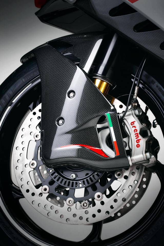 車體采用一副復(fù)合結(jié)構(gòu)(鋼管制的編織式結(jié)構(gòu)主樑 + 鋁合金制的兩側(cè)下樑)的鋼管制車架、后單搖臂,Marzocchi 配套的倒立式前叉(叉芯口徑為 43 mm、行程為 125 mm)、Sachs的后減震(行程為 130 mm),Brembo布雷博的 Stylema 前剎車卡鉗、直徑為 320 mm 的雙前剎車碟;集成了空氣動力學(xué)設(shè)計的整流罩,5.5 英寸的全彩 TFT 數(shù)字式儀表板等。