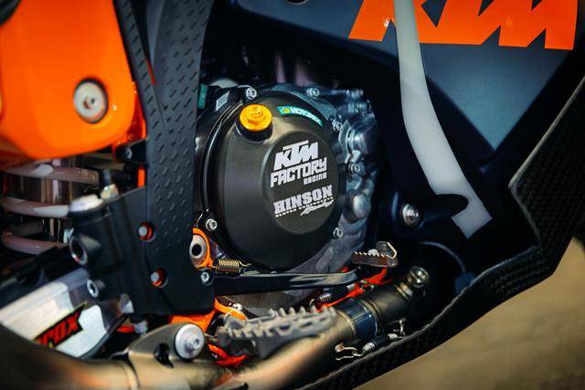 市售規(guī)格的 2026 款 450 Rally Replica 復制版拉力賽車、基于此前發(fā)售的 2025 款修改而成,搭載一副水冷四沖程單氣缸、SOHC 四氣閥、排氣量 449.3 cc 的發(fā)動機,為對應拉力賽的使用場景、該車配備了六檔的變速齒輪箱(同動力平臺,MX 場地越野版的 450 SX-F 和 Enduro 規(guī)格的 450 EXC-F 均采用五檔的變速齒輪箱),經(jīng)過強化的離合器,兩個獨立的散熱器以確保有更大的冷卻效率。
