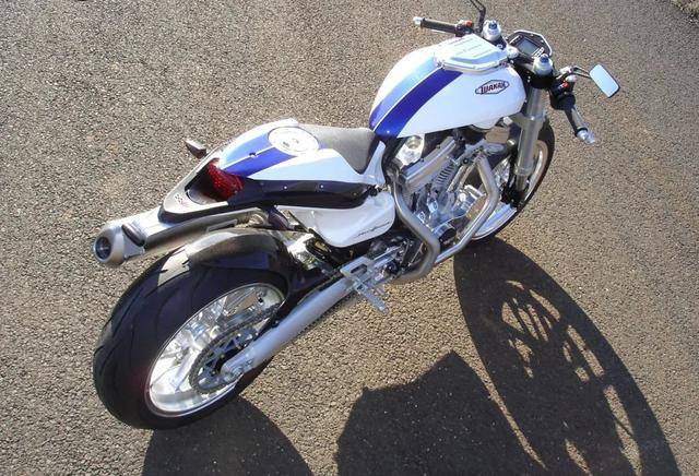 只需一眼,你就會被所震驚:這是一臺前所未見、不與任何一家品牌產(chǎn)品類似的摩托車,這是原創(chuàng)性至少超過90%的機(jī)械藝術(shù)杰作!極度精簡的NK造型、濃烈的重金屬味道與超級摩托車的結(jié)構(gòu)奇異地結(jié)合起來,輻射出令人炫目的光彩;大型OHV風(fēng)冷雙缸成為視覺焦點(diǎn),給人異常強(qiáng)悍的感覺;鏡面般圓潤剔透的噴涂、高度洗練的布設(shè)、精美的發(fā)動機(jī)散熱片……每個(gè)細(xì)節(jié)都精雕細(xì)琢、美輪美奐,絕對是機(jī)械藝術(shù)的珍品!