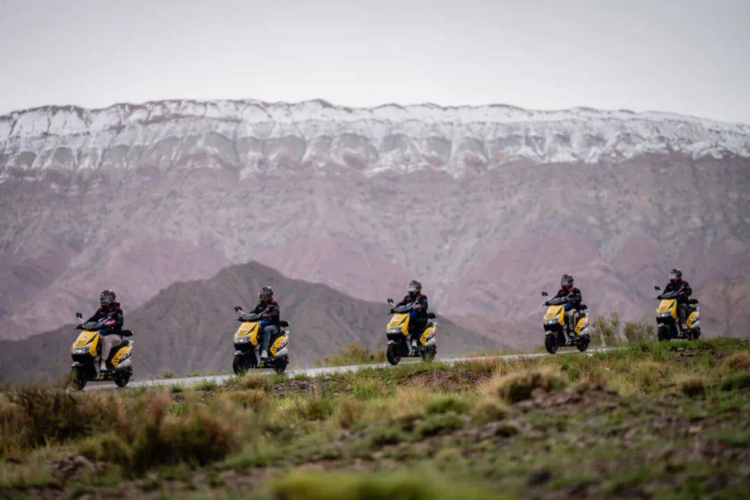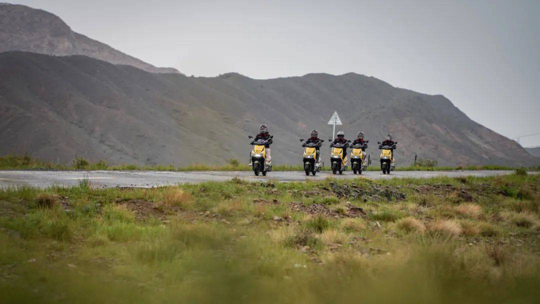 從起點(diǎn)達(dá)瓦昆沙漠到終點(diǎn)斯姆哈納村西極碑,五星鉆豹「極」系列高性能電摩組成的車隊(duì)橫跨沙漠、戈壁、峽谷、雪山四種截然不同的“生命禁區(qū)”。