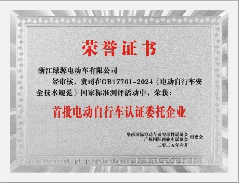 第一批!綠源入選“首批電動(dòng)自行車認(rèn)證委托企業(yè)”