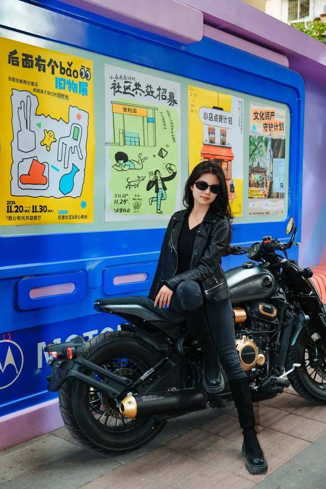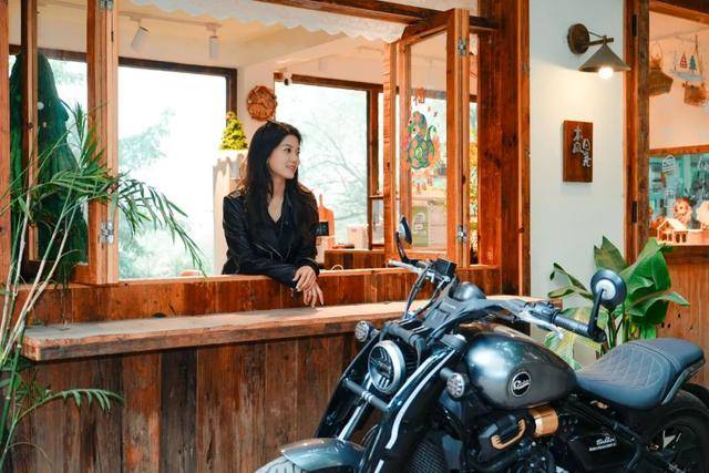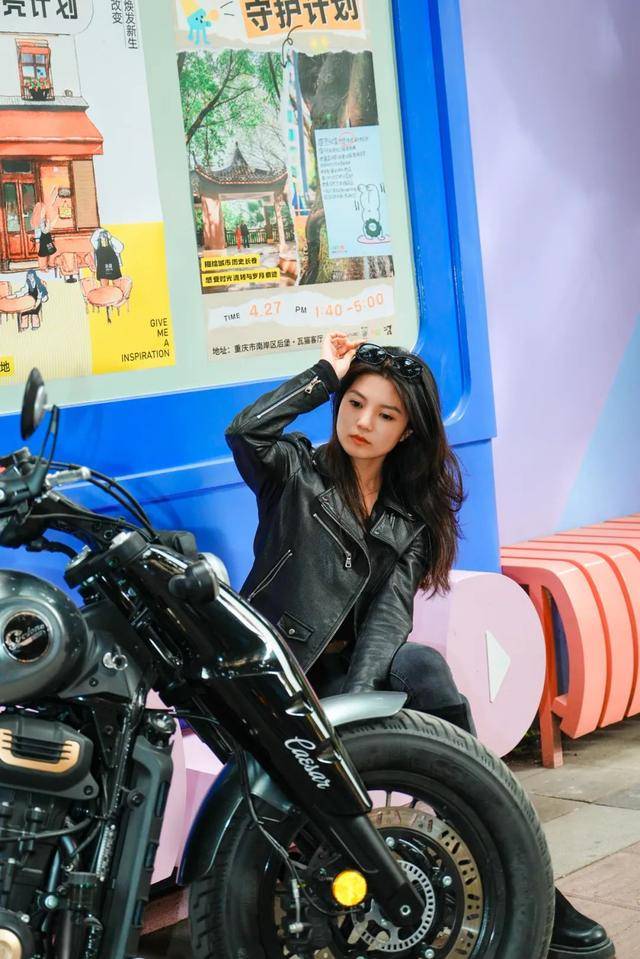 推薦人側(cè)坐在機(jī)車旁,氛圍感秒殺網(wǎng)紅景點(diǎn)。