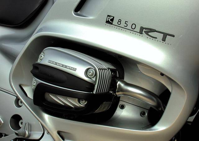 R 850 系列搭載一副風(fēng)/油冷的四沖程水平對向兩氣缸、每氣缸四氣閥的 Boxer “ 拳師 ” 發(fā)動機,缸徑、行程為 87.5 mm x 70.5 mm(旗艦級的 R 1100 動力平臺為 99 mm x 70.5 mm),排氣量 848 cc(R 1100 平臺為 1084 cc),全部車型均采用了電子燃油噴注系統(tǒng)、五檔的變速齒輪箱,峰值動力輸出為 73 匹(GS、R、RT 版)、50 匹(C 版),而旗艦級的 R 1100 GS、峰值動力輸出為 80 匹。