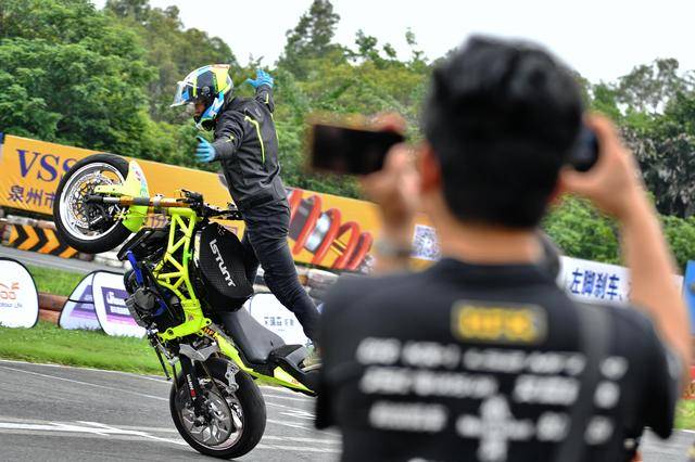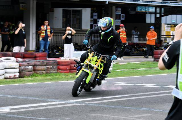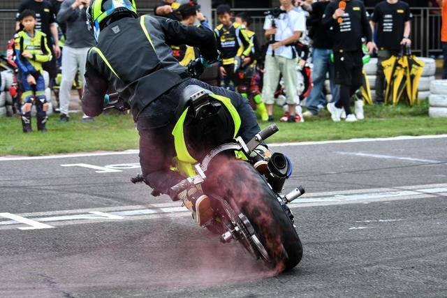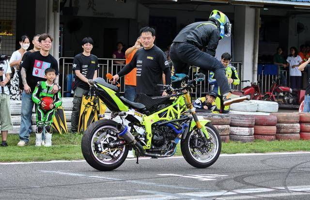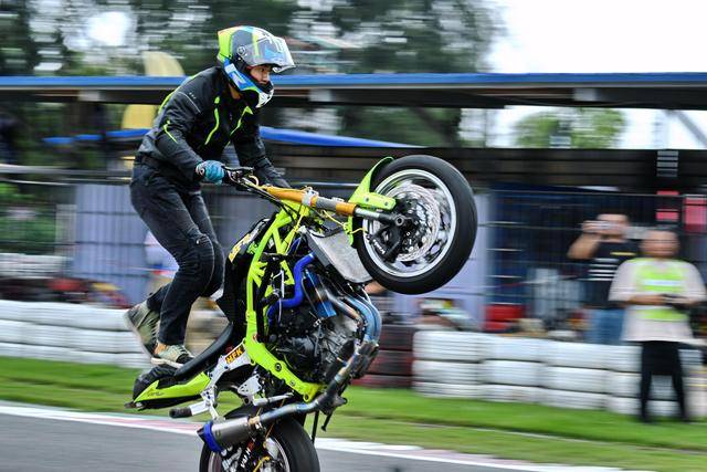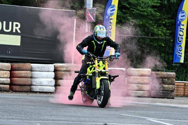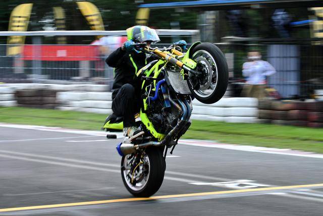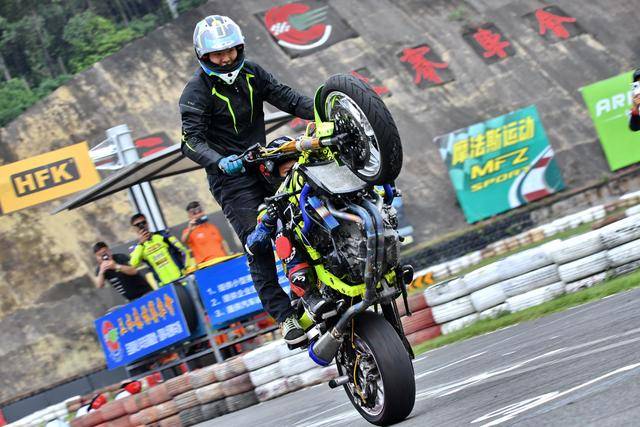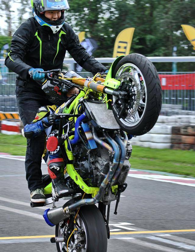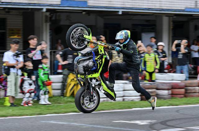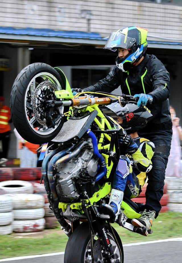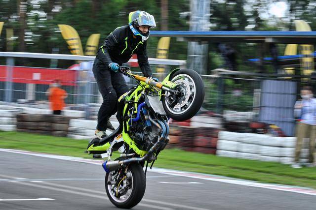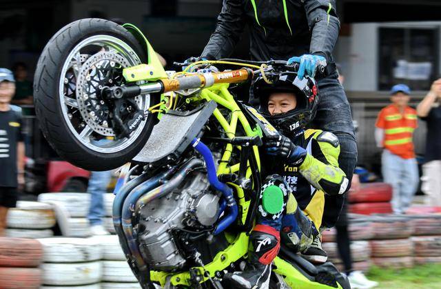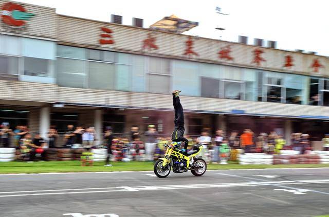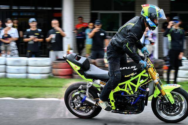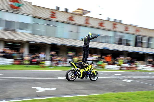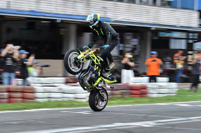 在過去的多年里,于童曾多次拿下國內(nèi)特技大賽的冠軍,這一次也不是我們首次現(xiàn)場看他的演出。一如既往地,他繼續(xù)以嫻熟的技巧、充分展示了他深厚的功架,讓喝彩之聲與直列四氣缸機器的咆哮、構(gòu)成了一曲獨特的樂章,而外露的直列四氣缸機器所特有的機械肌肉感,也跟如同龍飛鳳舞般的動作融合一處、為大家?guī)砹颂魬?zhàn)地心引力的視覺沖擊。
