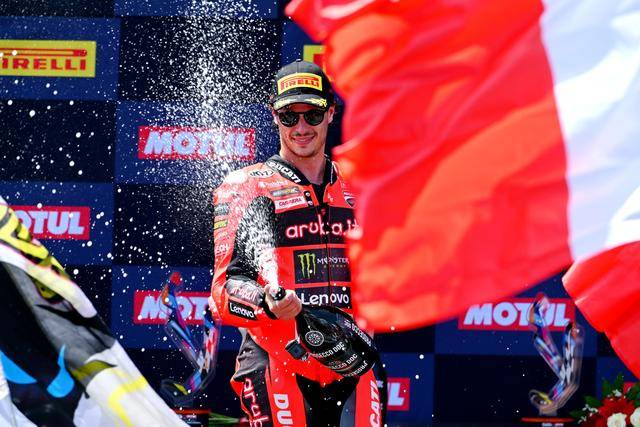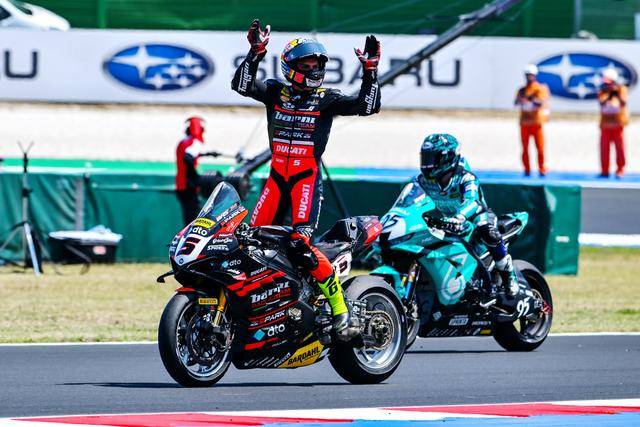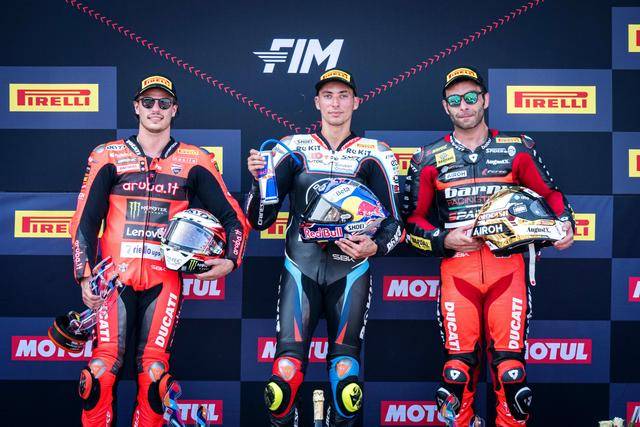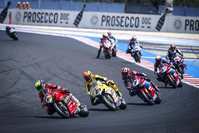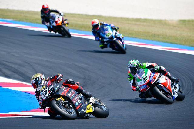 周末(六月 14 日)進(jìn)行的 WSBK 級(jí)別第一節(jié)正賽,布雷加在比賽的前段領(lǐng)跑、拉格里奧盧緊隨其后;僅僅是跑了 4 圈,前面的這兩位車手就形成了第一集團(tuán),并與后車?yán)_了超過 3 秒的距離;到第 5 圈,拉格里奧盧超越了布雷加、取得領(lǐng)先位置,在接下來的比賽里,兩人一前一后直奔終點(diǎn),差距始終保持在 0.15 到 0.6 秒之間。