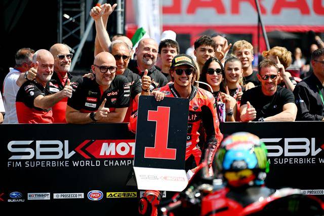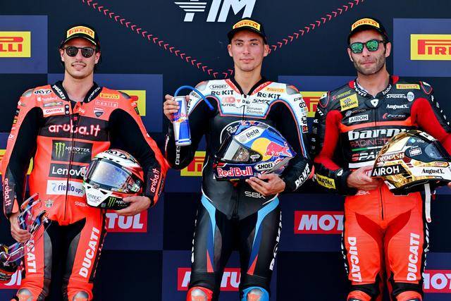 WSBK 級(jí)別,賽前的 Super Pole 超級(jí)排位賽,駕駛 11 號(hào)車的意大利車手布雷加(Nicolo Bulega)以破紀(jì)錄的 1 分 31.618 秒圈速(舊紀(jì)錄為 1 分 32.32 秒)、拿到了第一節(jié)正賽的排頭位出賽;駕駛 1 號(hào)車的土耳其車手拉格里奧盧(Toprak Razgatlioglu)成為了這一環(huán)節(jié)里、最后一位跑進(jìn) 1 分 31 秒級(jí)別圈速(1 分 31.856 秒)的車手,正賽將從第二位發(fā)車;駕駛 47 號(hào)車的意大利車手巴薩尼(Axel Bassani)排在了第三位起步。