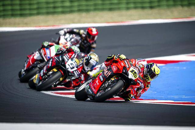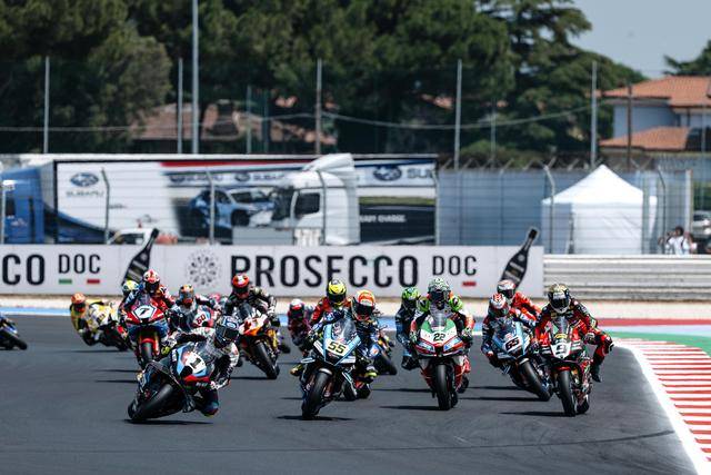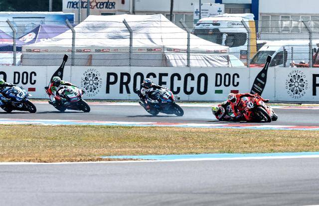 WSBK 級(jí)別在周日(六月 15 日)的競(jìng)賽環(huán)節(jié)是超級(jí)排位賽正賽(Super Pole Race)和第二節(jié)正賽。首先進(jìn)行的超級(jí)排位賽正賽、賽程為 10 圈。起步之后第 1 圈的一號(hào)彎,駕駛 47 號(hào)車的意大利車手巴薩尼(Axel Bassani),企圖從后硬插入前面帶頭、駕駛 11 號(hào)車的意大利車手布雷加(Nicolo Bulega),但他失去了對(duì)賽車的控制并滑倒、之后直接鏟倒了布雷加,結(jié)果雙雙摔車并退出了比賽。賽后,F(xiàn)IM WorldSBK 賽事管理委員會(huì)對(duì)這次碰撞進(jìn)行了調(diào)查,并以不負(fù)責(zé)任地騎行、對(duì)巴薩尼作出了處罰:他需要在接下來(lái)的第二節(jié)正賽里,接受兩個(gè)長(zhǎng)圈的處罰。
