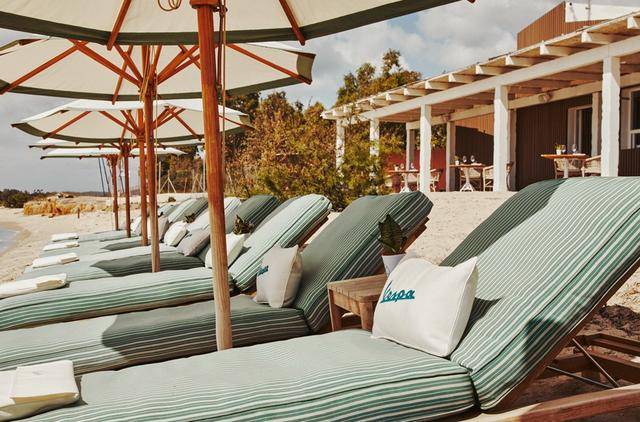 Vespa的品牌精神,貫穿于伊斯莫拉斯海灘俱樂(lè)部(Is Molas Beach Club)的每一處細(xì)節(jié)之中:從休閑區(qū)到日光躺椅區(qū),專(zhuān)門(mén)定制的遮陽(yáng)傘、柔軟舒適的靠墊、標(biāo)志性色彩的沙灘巾,以及為賓客免費(fèi)提供的槳板,無(wú)一不在歌唱Vespa的自由宣言。