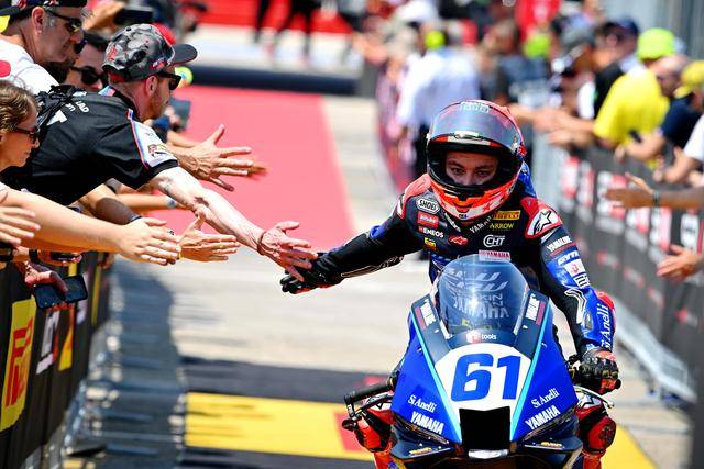 WorldSSP 級別(相當于此前的 World Supersport 600/WSSP600),Yamaha 今年開始進場的新型賽車 YZF-R9 與歐洲制造商的老款 Panigale V2(955 cc 版本)、F3 800 之間的角逐,繼續(xù)成為了比賽里的焦點。