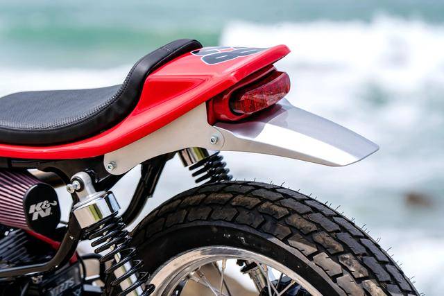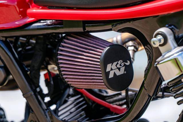 硬件方面的升級,采用了高位安裝的定制消聲器,開放式設(shè)計的錐形空氣濾清器,鋼制的前后剎車油管等。