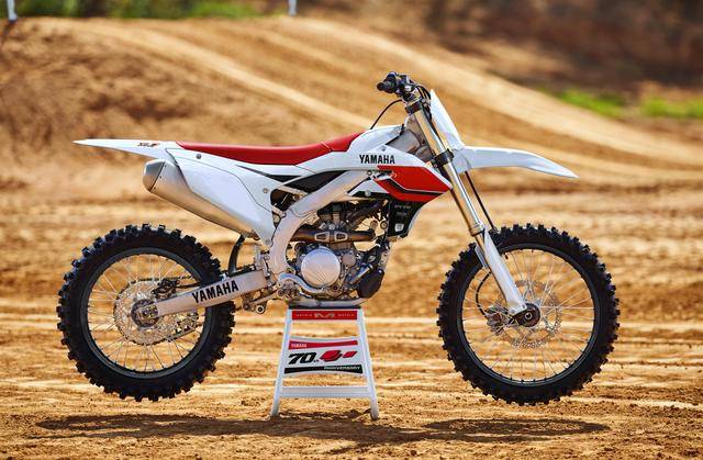 Yamaha Motor 創(chuàng)立七十周年紀(jì)念版的 2026 YZ250F(YZ250FSV),規(guī)格上與標(biāo)準(zhǔn)版相同,但車身采用了一個與上世紀(jì)九十年代末、千禧年之前,第一輛在 MXGP 越野世界錦標(biāo)賽和 AMA 越野賽中獲得冠軍的四沖程越野工廠賽車 YZM400F 相同風(fēng)格的紅/白色圖案。