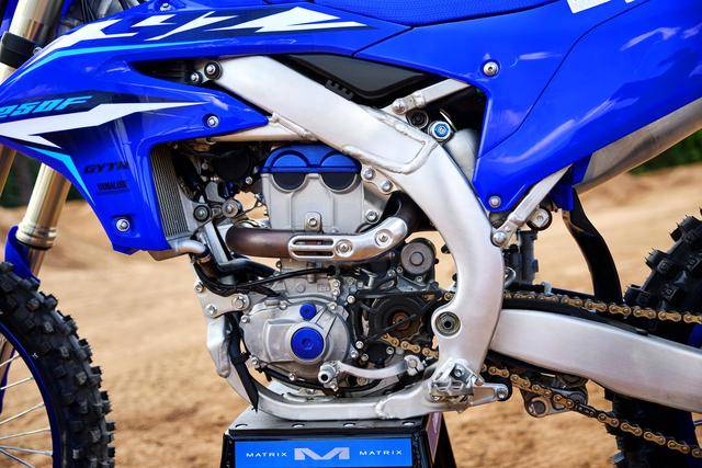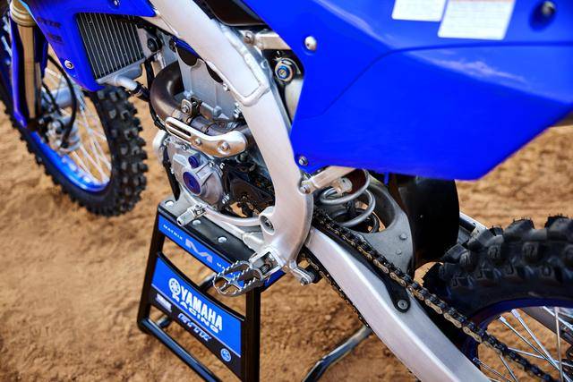 屬于 MX2 規(guī)格的 2026 YZ250F,是基于 2023 年七月首次公開的 2024 款換代車型修改而成。新車沿用一副水冷四沖程反向后傾單氣缸、DOHC 四氣閥的發(fā)動機(jī),缸徑、行程維持在 77 mm × 53.6 mm,壓縮比 13.8:1,排氣量 249 cc,采用了電子燃油噴注系統(tǒng)、五檔的變速齒輪箱。廠方未公布峰值動力輸出,但此級別的賽車、最大動力輸出普遍是在 40 匹以上。與上一代車型的動力單元相比,這一代 YZ250F 的發(fā)動機(jī)內(nèi)部,進(jìn)氣系統(tǒng)、時規(guī)鏈(凸輪軸傳動鏈)等組件經(jīng)過改進(jìn),一系列的變化、讓新機(jī)器具有更好的中、高轉(zhuǎn)速性能。