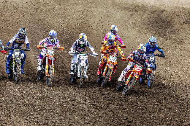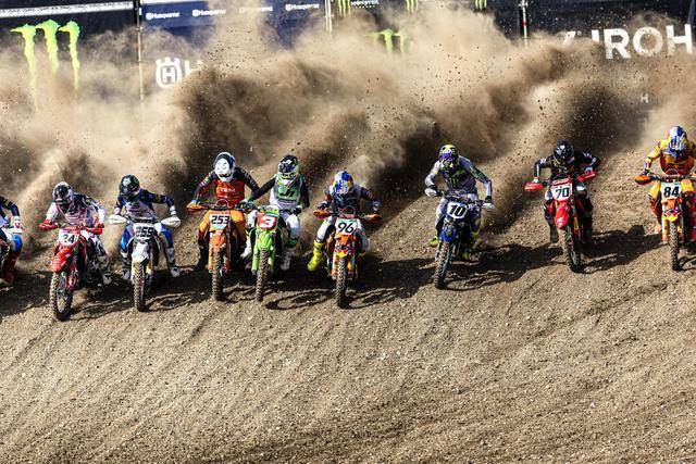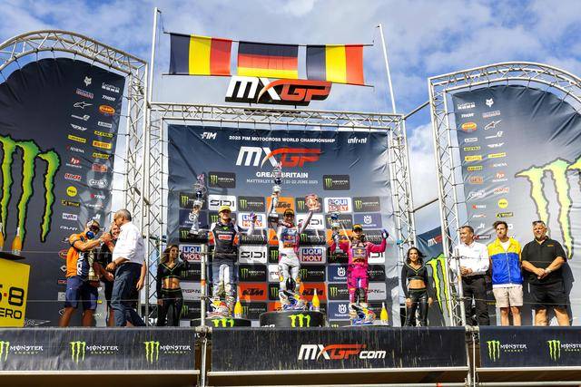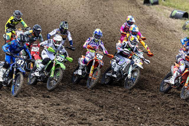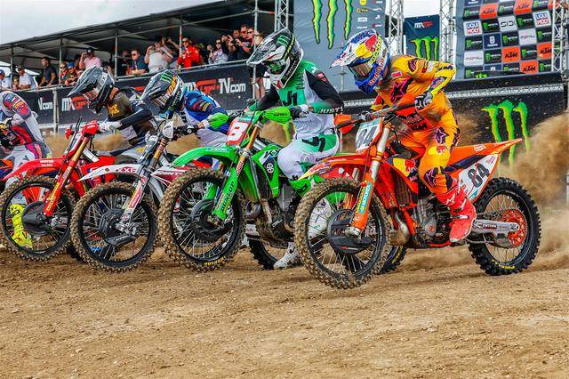 MXGP 級別(使用搭載四沖程單氣缸、排氣量 450 cc 以下發(fā)動機的賽車)的角逐,在進入下半賽季之后(今年共有二十個分站的比賽)達到了白熱化的階段。第一節(jié)的比賽,駕駛 259 號車的荷蘭車手科登霍夫(Glenn Coldenhoff)奪得了冠軍,駕駛著 Fantic XXF450 賽車的他,為這家意大利制造商拿到了在 MXGP 最高級別歷史性的首次勝利;后面,另外兩支工廠車隊的車手,KTM 工廠車隊、96 號車的比利時車手科寧(Lucas Coenen)奪得了亞軍,Kawasaki 工廠車隊、3 號車的法國車手費布爾(Romain Febvre)拿到了季軍。