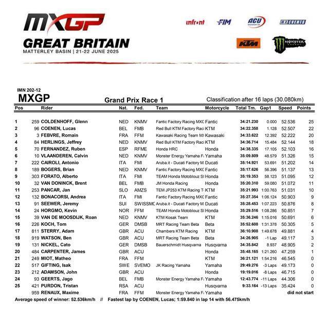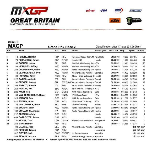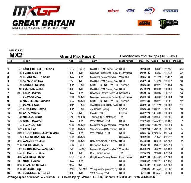 FIM MXGP 越野世界錦標賽 2025 第十二站的比賽,六月 21 - 22 日在英國當?shù)刂鸟R特利盆地(Matterley Basin)賽道舉行。