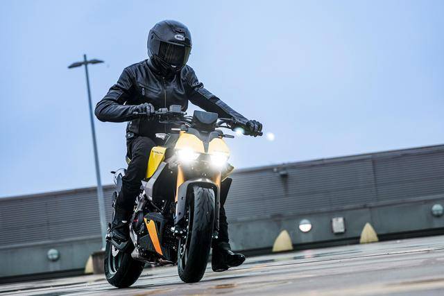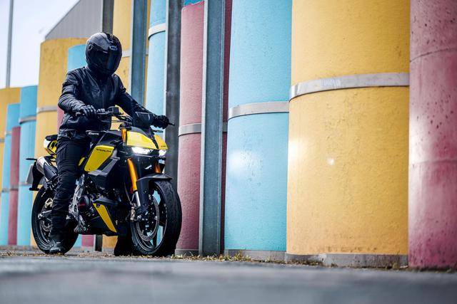 車體采用一副復(fù)合結(jié)構(gòu)的車架,倒立式的前叉、單筒式后減震,全 LED 的燈光系統(tǒng),5 英寸 TFT 全彩色儀表板,Byber 配套的前后碟式制動(dòng)系統(tǒng)、雙通道的 ABS(可選裝彎道 ABS),容量為 12.5 公升的油箱,干燥重量為 129 公斤。