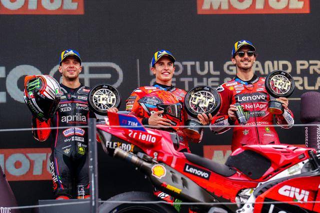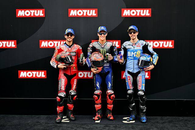 MotoGP 級別、賽前的 Q2 排位,駕駛 20 號車的法國車手夸塔拉羅(Fabio Quartararo)以 0.0285 秒的優(yōu)勢,拿到了排頭位發(fā)車;后面,63 號車的意大利車手巴納亞(Francesco Bagnaia)、73 號車的小馬昆斯(Alex Marquez)分別占據(jù)第一排發(fā)車位置的其余兩席。