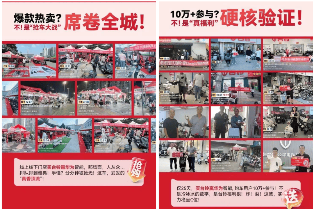 據(jù)市場反饋,旺季以來,多地臺鈴門店出現(xiàn)“爆單潮”:導(dǎo)購連軸轉(zhuǎn)、試騎排隊、熱門車型一度斷貨,用戶爭相搶購,甚至在部分廣場活動上出現(xiàn)“排隊搶車”的盛況。
