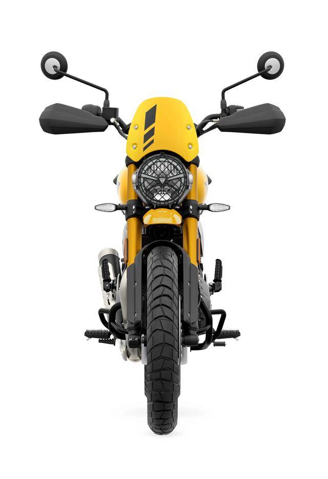 3、雙前輪擋泥板的設(shè)計(jì),加裝了一個(gè)越野風(fēng)格的、高位安裝的前輪擋泥板(X 版只有一個(gè)緊貼前輪胎設(shè)計(jì)的前擋泥板),加裝了小型的前風(fēng)擋,采用了分離式設(shè)計(jì)的后座乘客扶手(X 版采用一體式設(shè)計(jì)的乘客扶手)。此外,還有三個(gè)新的、具現(xiàn)代感的配色方案(Racing Yellow 賽車黃、Storm Grey 風(fēng)暴灰和 Vanilla White 香草白)供選擇。