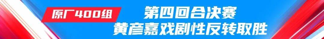 改裝400組第四回合決賽緊接在改裝300組決賽后。燈滅起跑,林智飛起步驚艷,一號彎搶得頭名,隊友區(qū)錦彬緊隨其后,二人組成領(lǐng)先集團(tuán);倪天暫列第三,與前車?yán)_0.8秒差距。幾圈下來,林智飛與區(qū)錦彬默契配合,將優(yōu)勢逐步擴(kuò)大,但兩人間始終咬在0.2秒內(nèi)。比賽過半,倪天開始遭到黃家輝、張帥帥、董磊的連環(huán)追擊,雖多次化解攻勢,但壓力陡增。倒數(shù)第三圈,張帥帥發(fā)起凌厲攻勢,倪天死守路線未讓對手突破。最終,林智飛與區(qū)錦彬以絕對優(yōu)勢包攬冠亞軍,倪天頂住壓力收獲季軍。