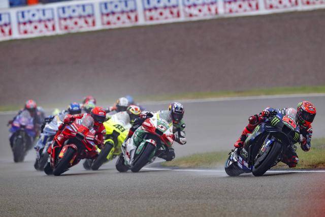 Q2 結(jié)束之后,賽程為 13 圈的 Sprint短途沖刺賽、依舊在濕地之下展開(kāi)。由于在 1 號(hào)彎走大,從排頭位發(fā)車的馬昆斯很快就失去了領(lǐng)先位置,完成第 1 圈比賽之后、他掉到了第五;前面,貝澤奇帶頭,21 號(hào)車的意大利車手莫比戴利(FrancoMorbidelli)、20 號(hào)車的法國(guó)車手夸塔拉羅(Fabio Quartararo)、49 號(hào)車的意大利車手吉南托里奧(Fabio Di Giannantonio)緊隨其后。