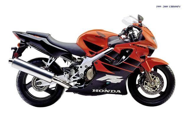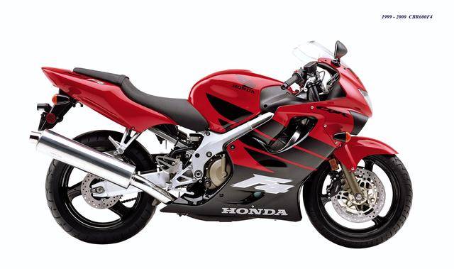 4、第四代:1999 - 2000 CBR600F,俗稱的 F4,工廠編號為 PC35(前期型),搭載一副全新設(shè)計(jì)的水冷四沖程直列四氣缸、DOHC 每氣缸四氣閥發(fā)動機(jī),缸徑、行程修改為 67 mm x 42.5 mm,排氣量 598 cc,配備了口徑為 36.5 mm 的化油器,最大動力輸出提高至 100 匹;車體采用了全新的外觀造型設(shè)計(jì),換上了鋁合金鋼制的雙翼樑式車架,正立式前叉也換裝了叉芯口徑為 43 mm 的配套;