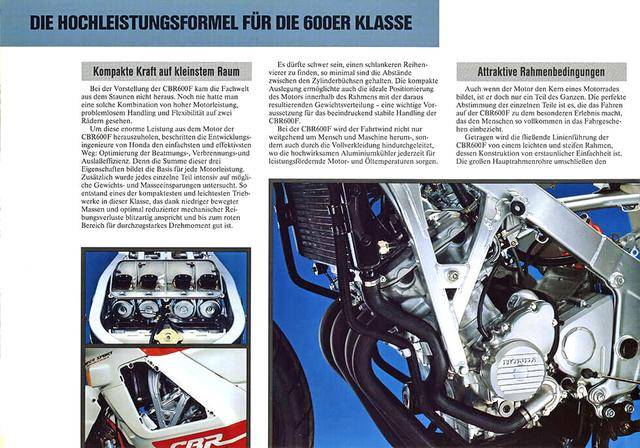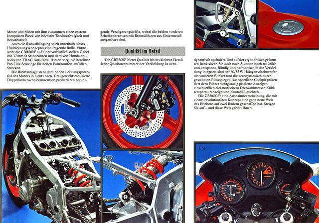 2、第二代:1991 - 1994 CBR600F,俗稱的 F2,工廠編號為 PC25(前期型),搭載水冷四沖程直列四氣缸、DOHC 每氣缸四氣閥的發(fā)動機(jī),缸徑、行程修改為 65 mm x 45.2 mm,排氣量 598 cc,換裝了口徑為 34 mm 的化油器,最大動力輸出 100 匹(歐洲版);車體采用鋼制的雙翼樑式車架,正立式前叉、其叉芯口徑升級至 41 mm 的配套;