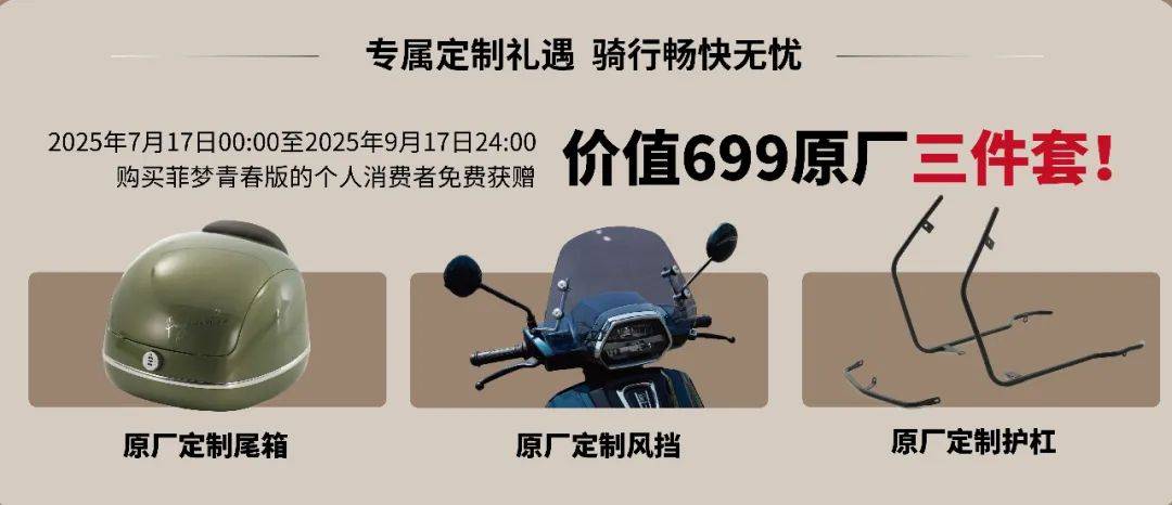 活動(dòng)內(nèi)容:符合資格的購(gòu)車用戶,可免費(fèi)獲贈(zèng)價(jià)值699元的“古思特原廠騎行三件套”禮包(含原廠定制風(fēng)擋、原廠定制尾箱、原廠定制護(hù)杠),自由選裝。