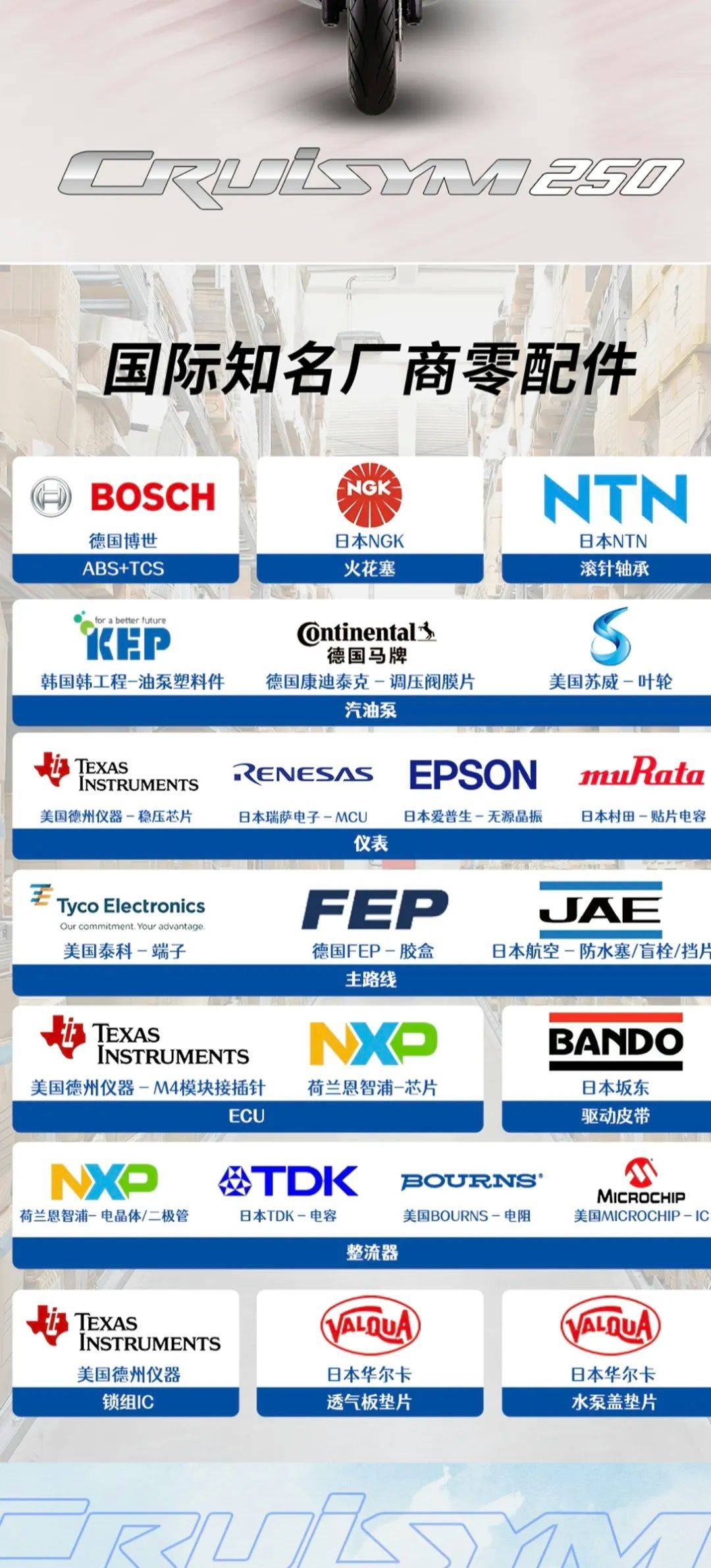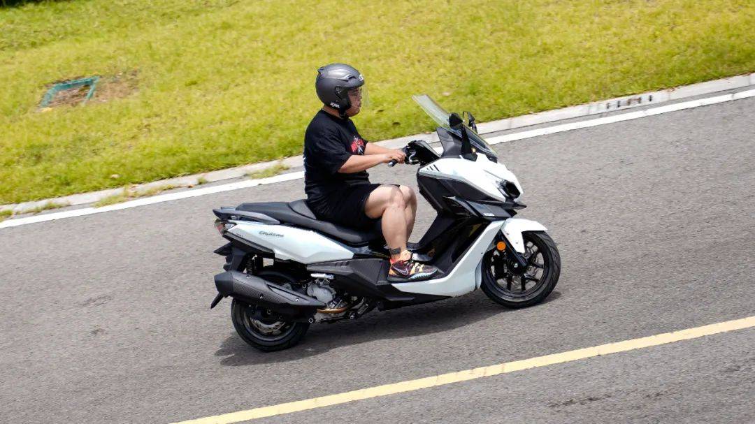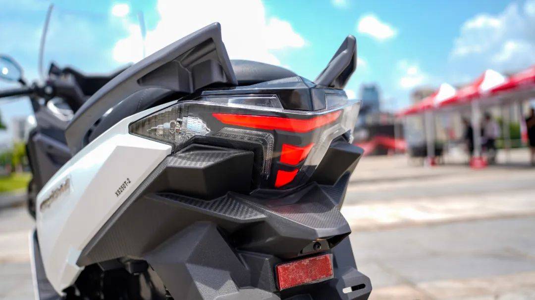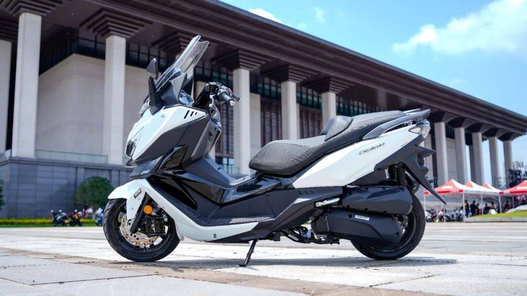 三陽首款250踏板,巡弋250在貴州遵義發(fā)布,零售價(jià)22980元,限時(shí)優(yōu)惠1000元。整車造型非常有辨識(shí)度,線條凌厲,家族化前臉設(shè)計(jì),運(yùn)動(dòng)大踏板的范兒。LED透鏡大燈,前轉(zhuǎn)向燈集成再后視鏡支架上;新設(shè)計(jì)的尾燈,采用三段式箭頭LED燈組,尾燈面積提升40%,加上熔巖燈腔式設(shè)計(jì),更有效警示后方車輛。超大的前風(fēng)擋,可以上下兩檔安裝(需擰螺絲),目測(cè)風(fēng)擋高度足夠,長途摩旅無須改裝風(fēng)擋。超大前手套箱,可容納一瓶普通純凈水加小瓶純凈水,內(nèi)有USB和TYPE-C雙充電接口。右邊為電池倉,擰開螺絲就可以直接拆裝電池,終于不用拆車殼裝電池了。全彩液晶儀表,無鑰匙啟動(dòng)系統(tǒng),12升中置油箱。尤其值得一提的是座桶空間高達(dá)45升,可容納2頂全盔(其中一頂要小一點(diǎn)),這應(yīng)該是目前250踏板中座桶容積最大的。三陽全新研發(fā)的水冷四氣門250引擎,采用航鈦陶瓷汽缸,更耐磨耐高溫,油耗更經(jīng)濟(jì),最大功率18.1KW/8000rpm,24N.m/6000rpm,優(yōu)化CVT 傳動(dòng)系統(tǒng),加速線性。賬面參數(shù)上,巡弋250要比光陽賽艇S250的17.2kw/7500rpm,23.6N.m/6000rpm略大一點(diǎn),191的整備質(zhì)量也比光陽小1公斤,可以預(yù)見其提速性能相當(dāng)強(qiáng)勁。前對(duì)向四活塞卡鉗,配260mm大直徑剎盤,后單向雙活塞卡鉗配240mm剎盤,組合雙通道博世ABS,以及博世TCS系統(tǒng),安全配置一步到位。后五段預(yù)載可調(diào)雙彈簧減震,前正立式套筒減震,帶防塵套。同時(shí)水冷器在車輛正前方,騎行時(shí)直面正面氣流,帶來更好的散熱效果。全車大量采用名牌零部件。座桶相當(dāng)友好,實(shí)測(cè)165身高男士可以半腳掌著地,172身高可以全腳掌著地?,F(xiàn)場(chǎng)簡(jiǎn)單試駕后,最大感受就是起步平順絲滑,提速感較強(qiáng)且平順,震動(dòng)抑制優(yōu)秀。