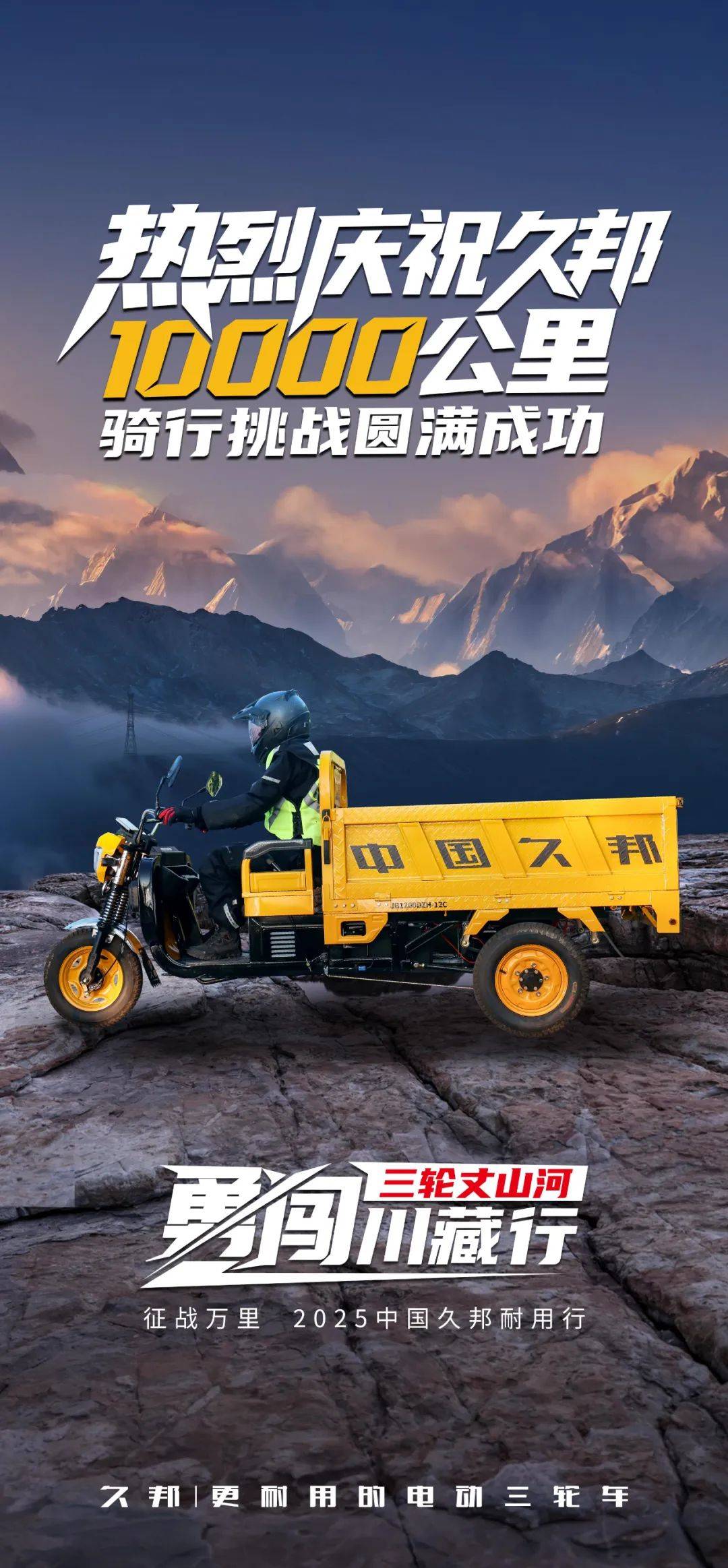 10000公里騎行挑戰(zhàn)圓滿成功,久邦用硬核實(shí)力重新定義電三性能極限!久邦電三作為行業(yè)“產(chǎn)品實(shí)力派”,始終堅持以硬核的產(chǎn)品差異化優(yōu)勢賦能終端大步向前,此次【勇闖川藏行,三輪丈山河】征戰(zhàn)萬里,2025中國久邦耐用行的圓滿收官更是其扎根產(chǎn)品研發(fā)的具像化表現(xiàn)。借助活動成功東風(fēng)、強(qiáng)大產(chǎn)品力加持,久邦電三必將攜手終端在行業(yè)旺季中大步向前,取得驕人戰(zhàn)績,讓我們拭目以待!