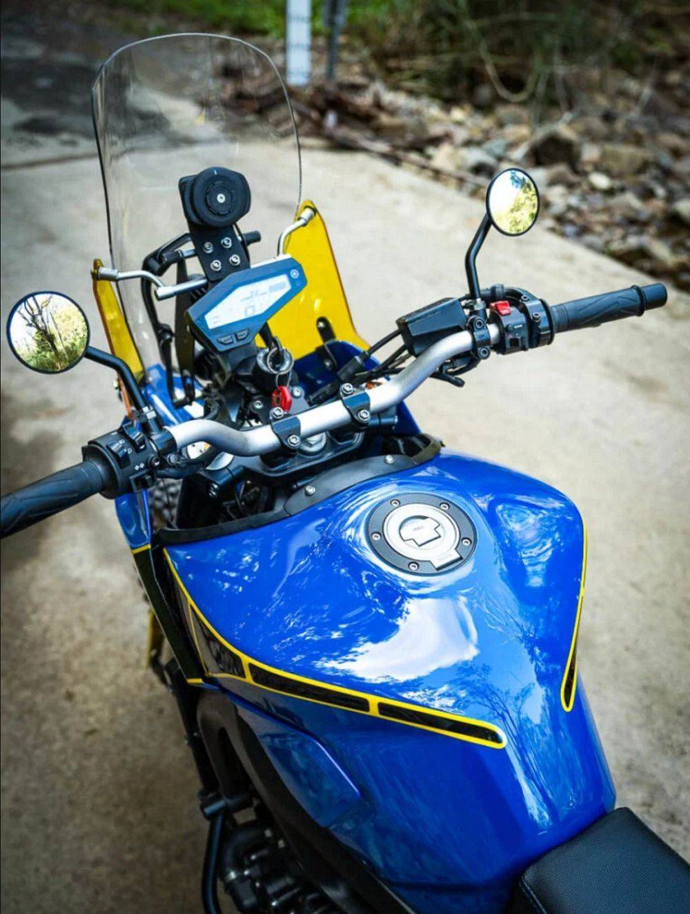 風(fēng)擋也另外加寬并在龍頭裝上了手機(jī)支架