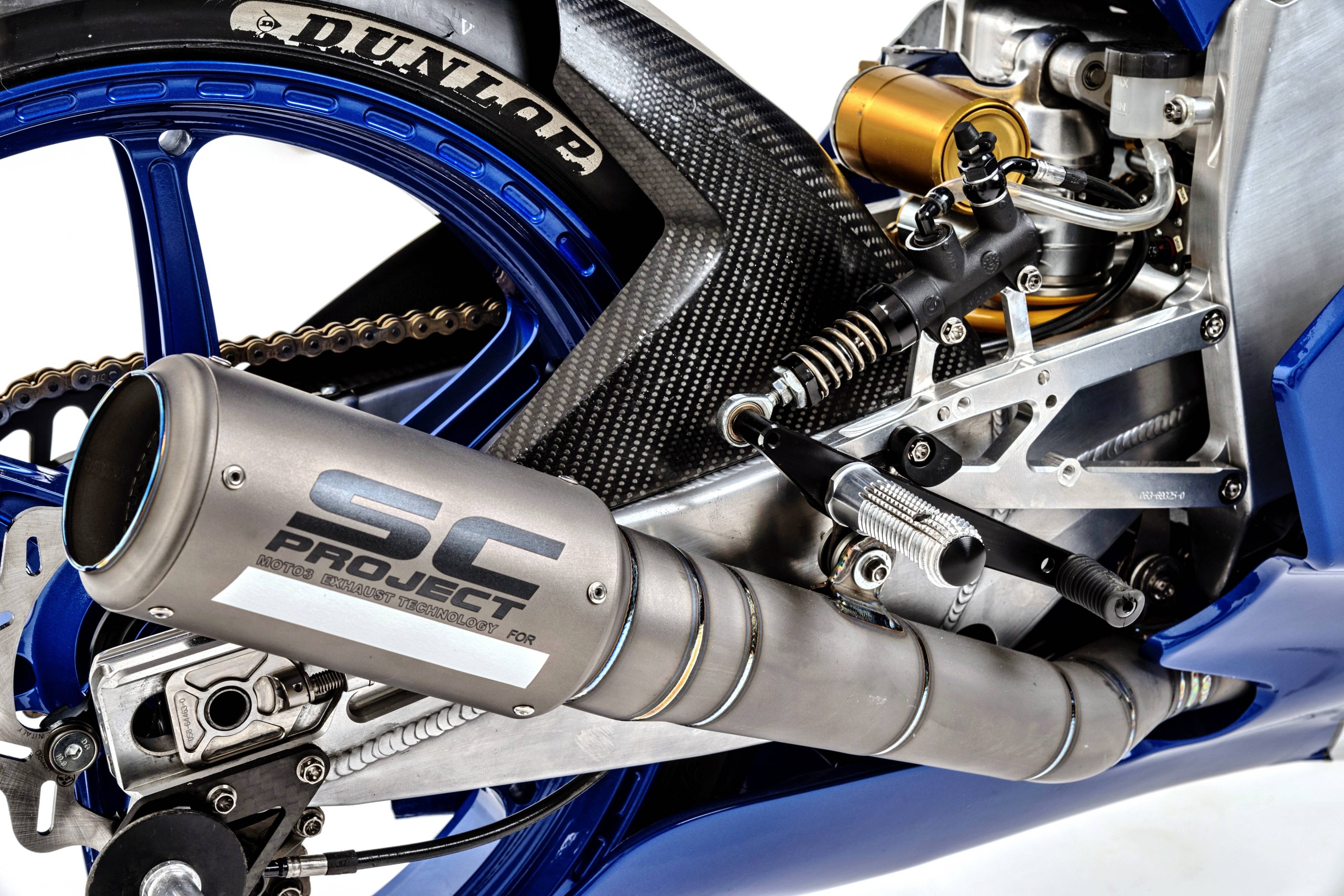 標(biāo)致摩托的 Moto3 賽車、型號(hào)為 MGP3O,該型號(hào)與馬欣德拉的 Moto3 工廠賽車相同,該車所搭載的水冷四沖程單氣缸發(fā)動(dòng)機(jī)來自 Oral Engineering(Kymco 過去用于 CIV 意大利錦標(biāo)賽的 Moto3 賽車也搭載該發(fā)動(dòng)機(jī)),第一代的馬欣德拉 2012 MGP30 以這副機(jī)器、搭配來自 Aprilia 阿普利亞的老款 GP125 賽車 RSV125 車架/底盤,用以參加第一屆 Moto3 的比賽。這樣拼湊出來、用于首次嘗試賽車,成績(jī)自然難以亮眼:2012 賽季,初代的 MGP3O 盡在法國(guó)站進(jìn)入積分區(qū)、拿到第十二名(4 分),其余分站的比賽均沒有拿到積分。