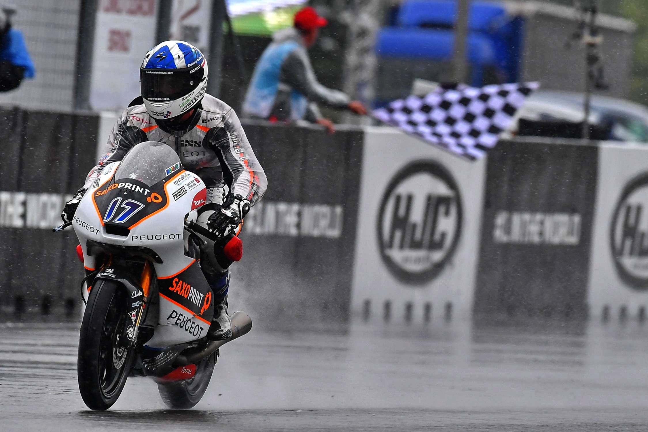 標(biāo)致摩托僅參加了兩個(gè)賽季的 Moto3(2016、2017 年。馬欣德拉為 2012 - 2017 年),并憑借駕駛 17 號(hào)車的英國(guó)車手麥菲(John Mcphee),在 2016 年八月下旬舉行的捷克站、雨中比賽里,歷史性地拿下了唯一的 Moto3 級(jí)別分站冠軍。這稱得上是標(biāo)致摩托、在近代公路型賽車?yán)锏母吖鈺r(shí)刻。