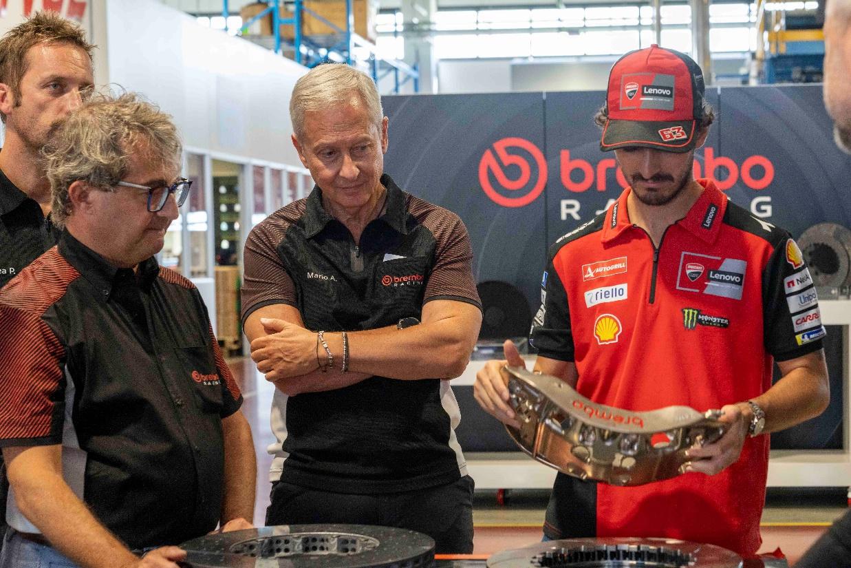 2025年7月21日,在結(jié)束捷克大獎(jiǎng)賽并即將迎來夏休之際,杜卡迪聯(lián)想車隊(duì)MotoGP世界冠軍車手Francesco Pecco Bagnaia、杜卡迪Corse總經(jīng)理Gigi Dall’Igna及體育總監(jiān)Mauro Grassilli率團(tuán)隊(duì)造訪布雷博(Brembo)總部,與這家意大利制動(dòng)技術(shù)巨頭共同慶祝其投身賽車運(yùn)動(dòng)50周年的里程碑時(shí)刻。