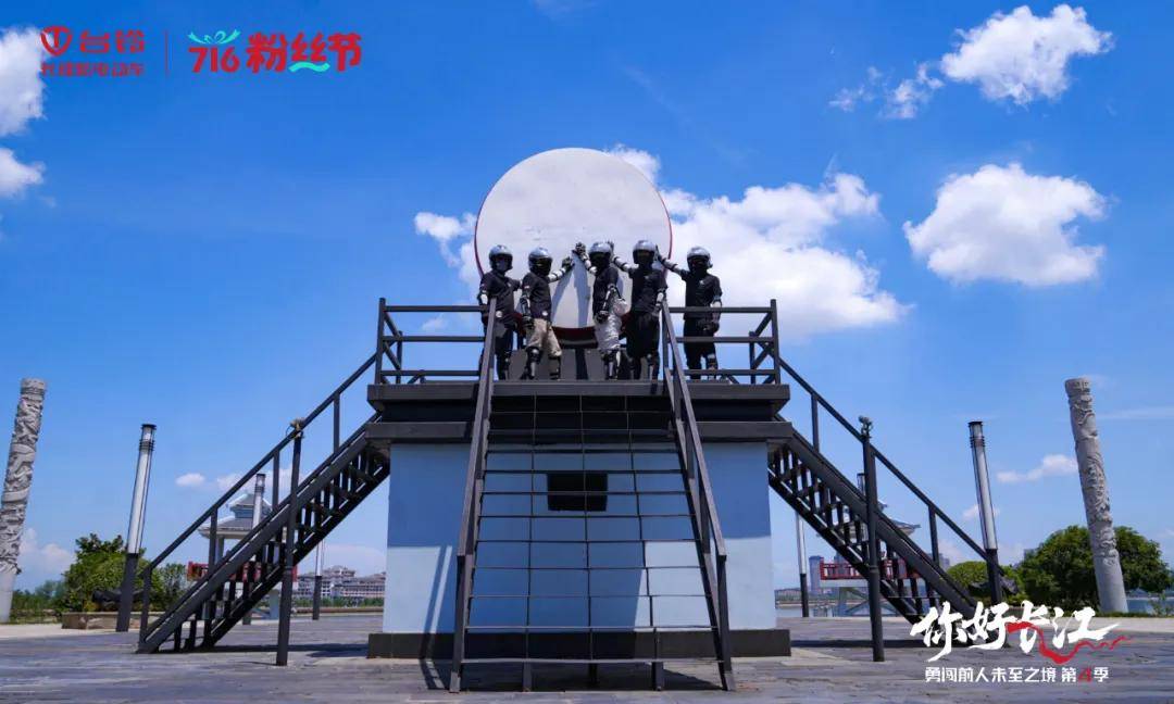 抵達(dá)氣勢恢宏的雄風(fēng)臺,騎手們仿佛仍能感受到“羽扇綸巾,談笑間,檣櫓灰飛煙滅”的雄才氣魄;登上高臺合影,身后是三湖交匯、水天相接的浩渺景象,胸中是激蕩著的千年豪情。