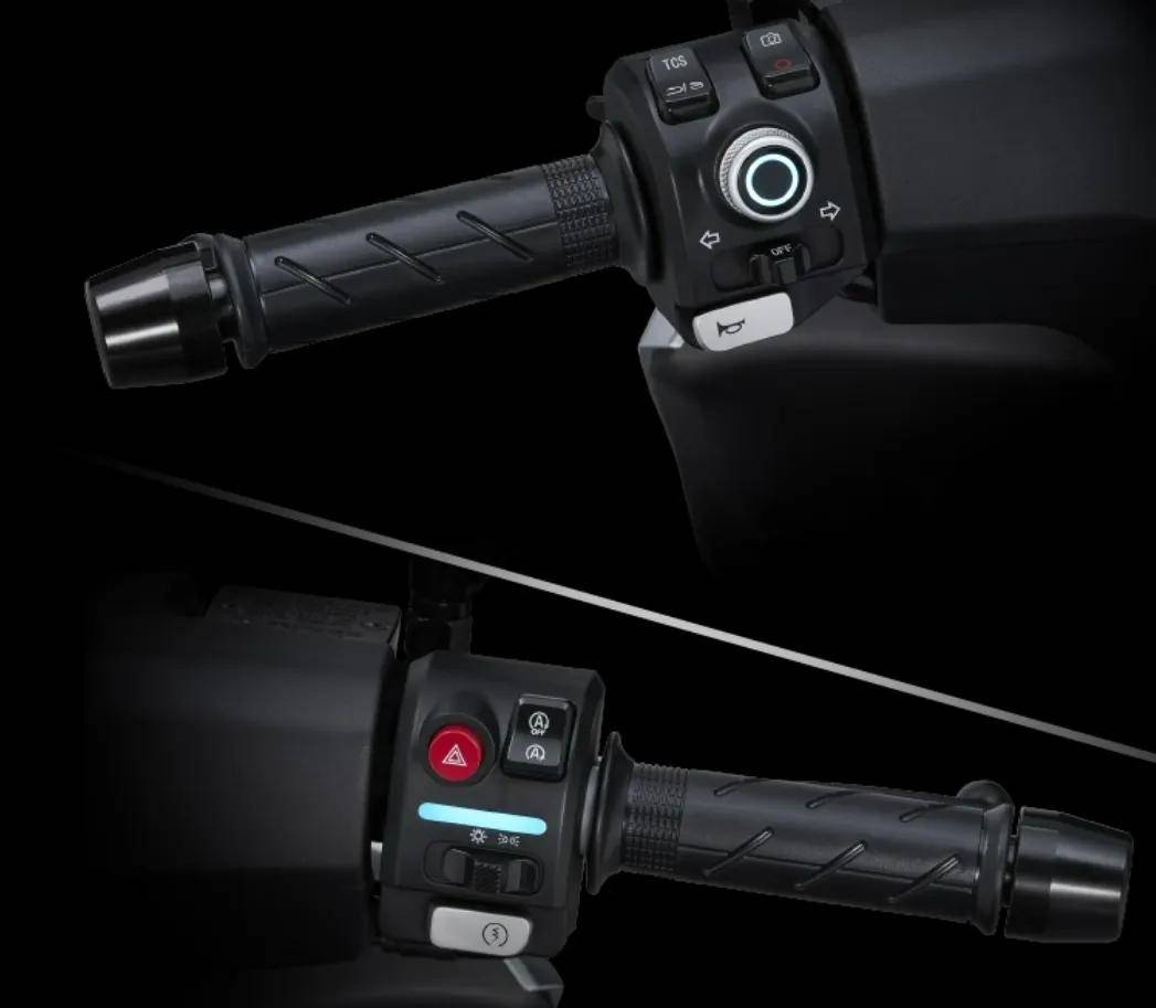 配置方面,我們先來看看標配哪些功能。輪胎規(guī)格全系均為110/70-14、130/70-13,前后均采用碟剎,且均配備ABS防抱死系統(tǒng),牽引力控制TCS也是全系標配,另外像發(fā)動機啟停、脈沖點火、USB接口、前風擋、LED前后燈組、雙閃、Wi-LINK全域智能等功能也是標配。在標配的基礎上,高配版多出了TFT液晶儀表、NFC解鎖、胎壓監(jiān)測、DJI運動相機互聯(lián)、隨心轉控制鍵、LED流水燈等配置,Pro版在此基礎上增加了毫米波后雷達、前行車記錄儀、高位風擋、智能尾箱、一體護杠等配置。